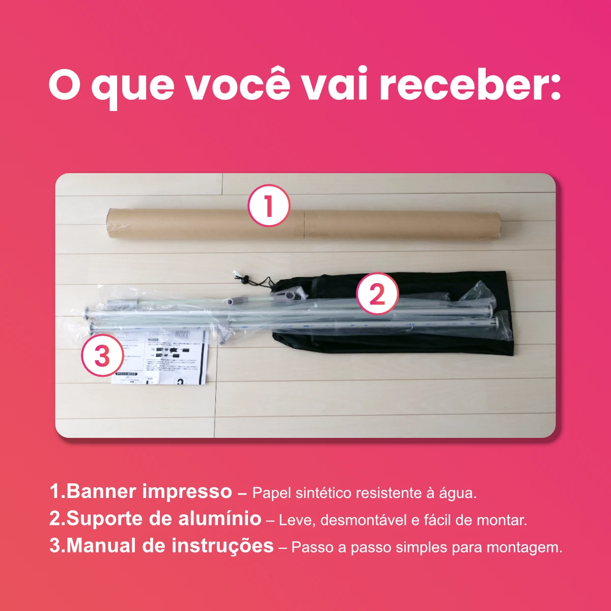 • Instalação: A fixação do banner no suporte deve ser realizada pelo cliente.
